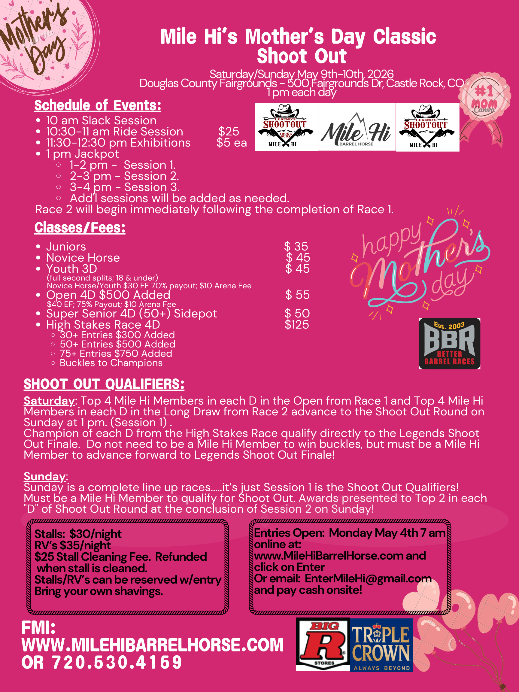 Our upcoming events are listed below. You may pre-enter these races, reserve exhibitions and/or ride sessions. Pre-entry times are posted on each individual flyer.