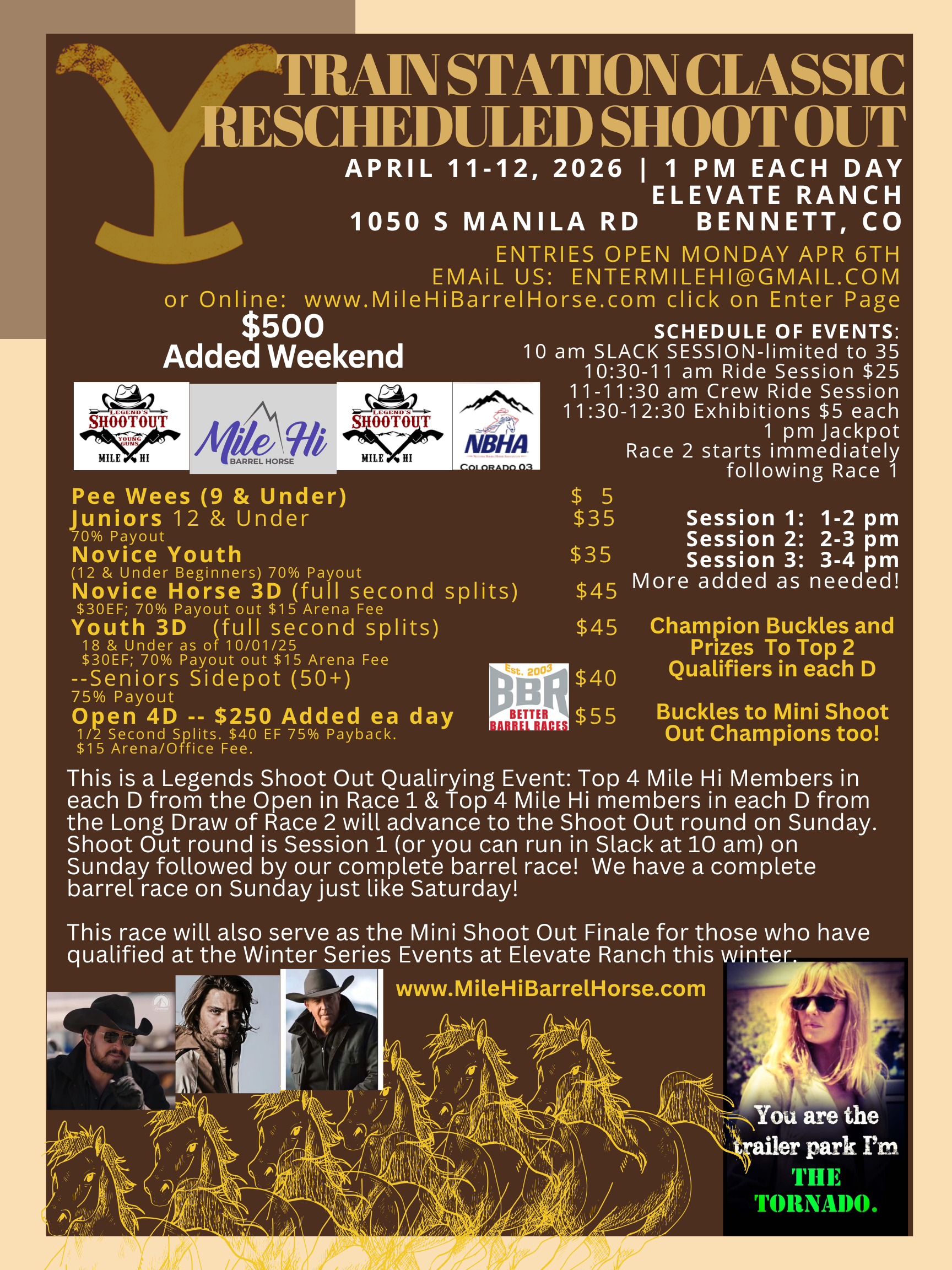 2. You may email us at: EnterMileHi@gmail.com. We will then put you on an IOU List and you pay onsite---CASH ONLY unless you are a Mile Hi member then you can write a check. We are not set up to accept debit/credit cards on site.